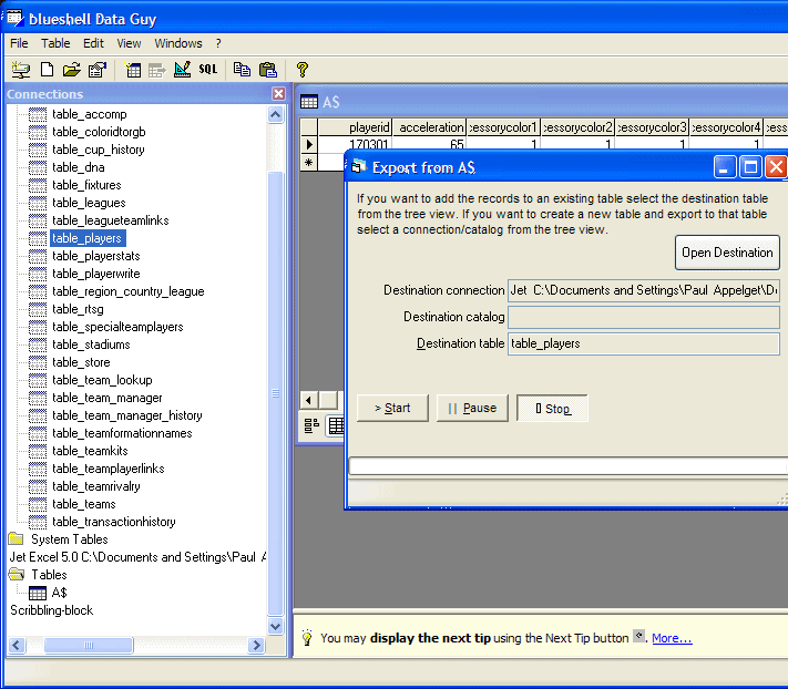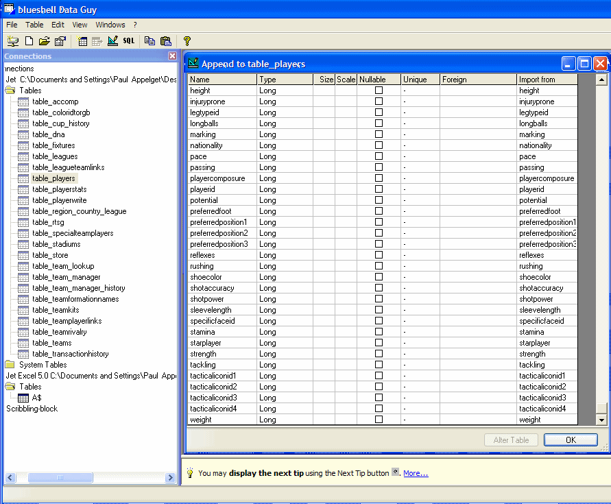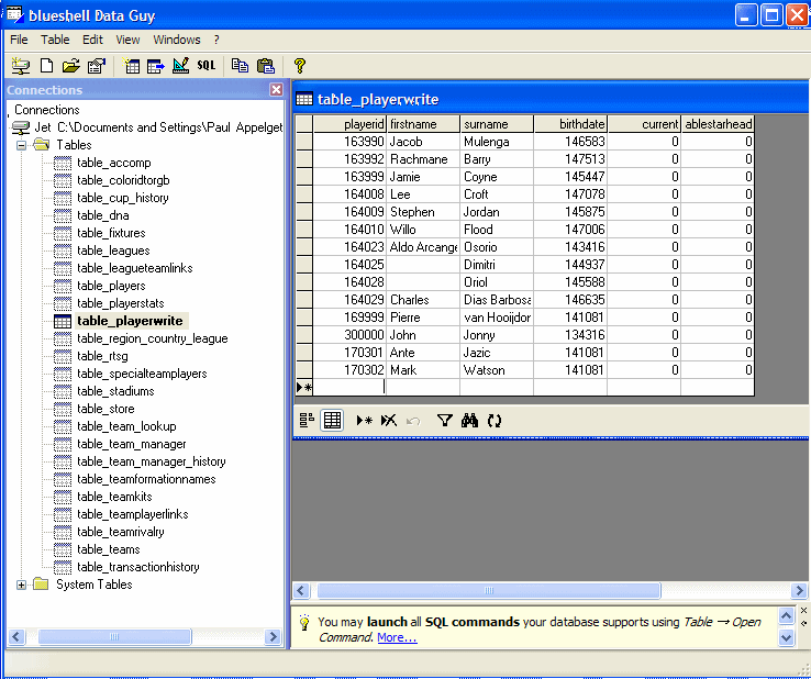 table_playerwrite has the names of the players in it. Let's start there. So let's open it.