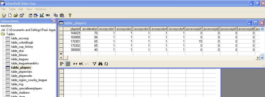 accessoryid1,2,3,4,5 You can add accessories. No accessories is number "0". I think if put "1" you will have a certain accessory. If you want that you'll have to figure that one out. I think that there are five accessories in the game. But I'm just guessing. Put "0" for now. You won't have accessories to start. I don't want them, so I'll just put "0". If you see a player in the game with an accessory you want to add. Look up the data on that player, then you can add that info with whatever new player you want to create.