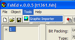 Now I'm ready to import this graphic back into t1361.fsh. In order to do this you need to use the program FshEd.exe. Open FshEd and open the t1361.fsh on the desktop.
